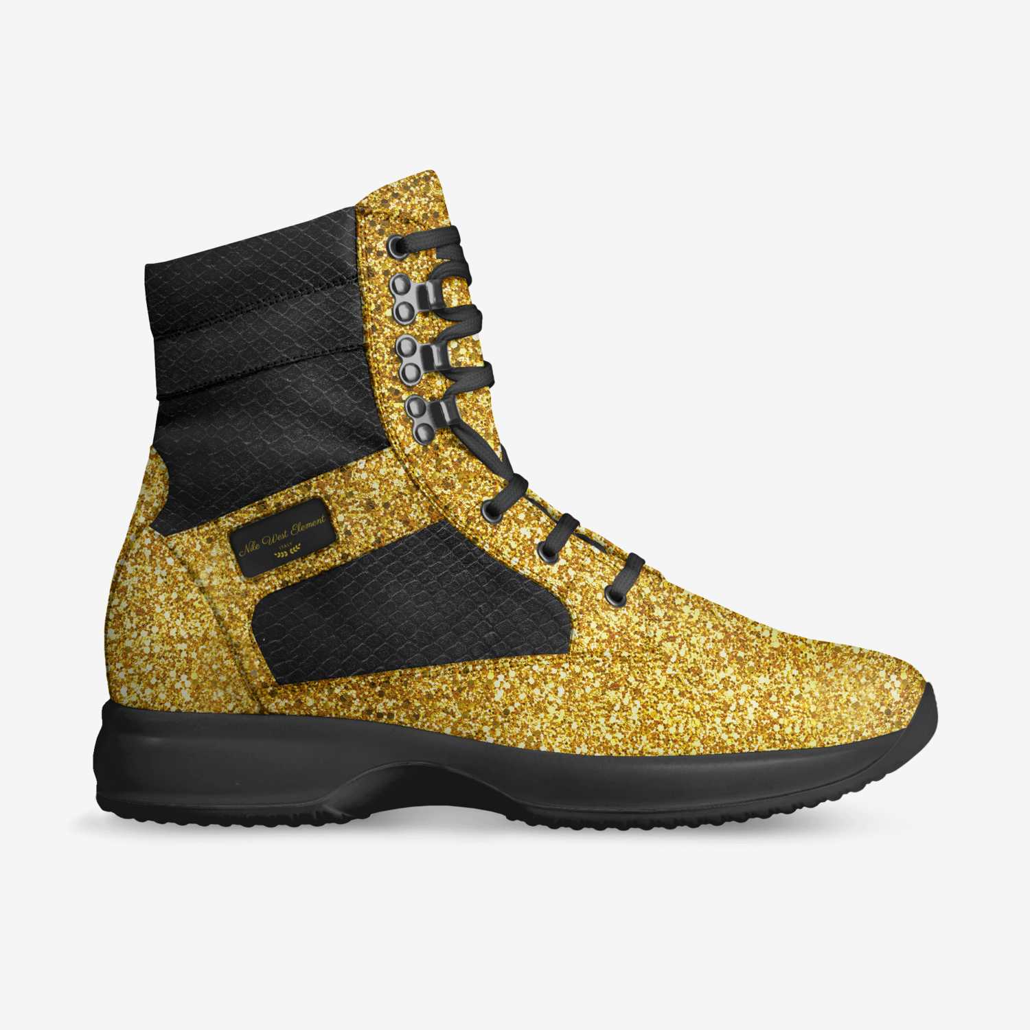 The Glitter Gold and Python Scale Black Colorway is what makes the Element colorway. Never be taken out of your royal element as this shoe is sure to remind everyone of that stature.