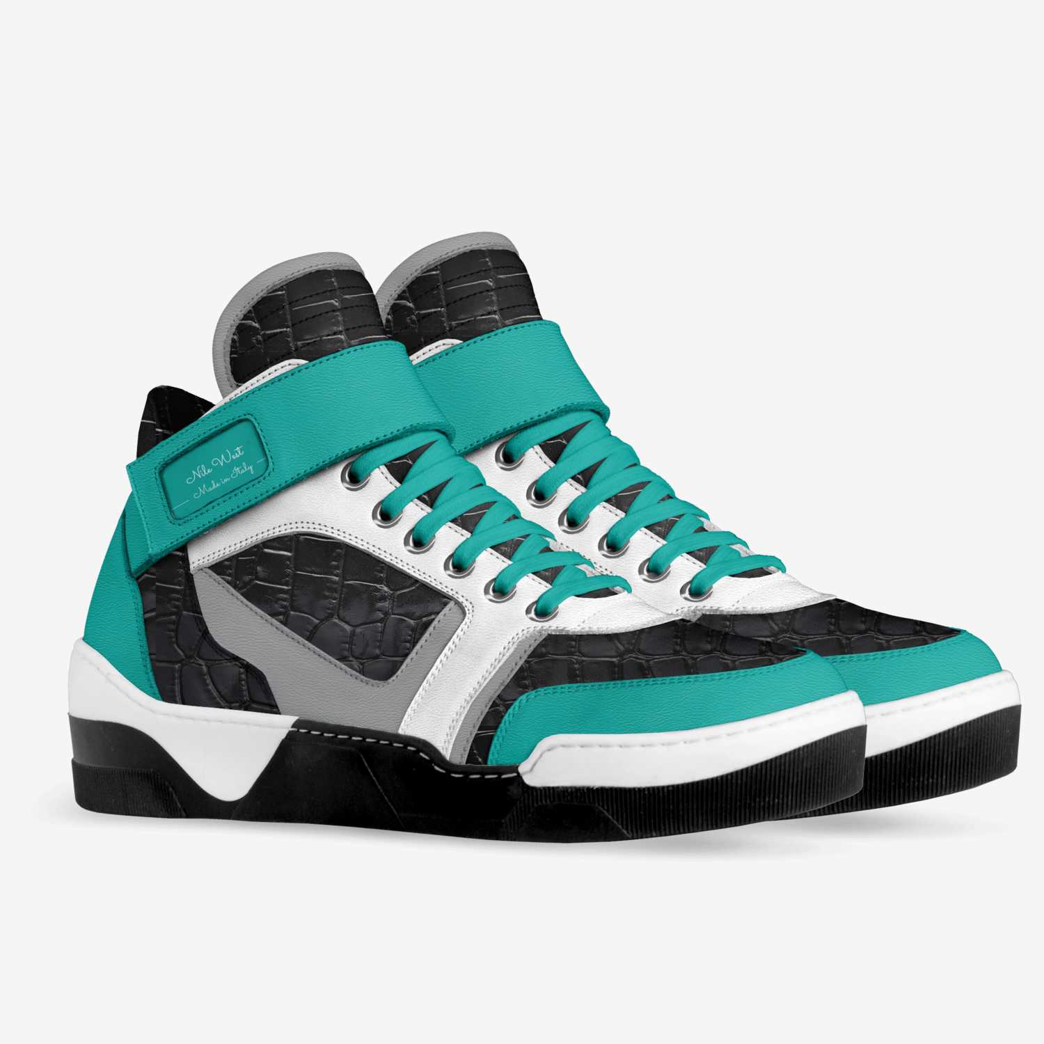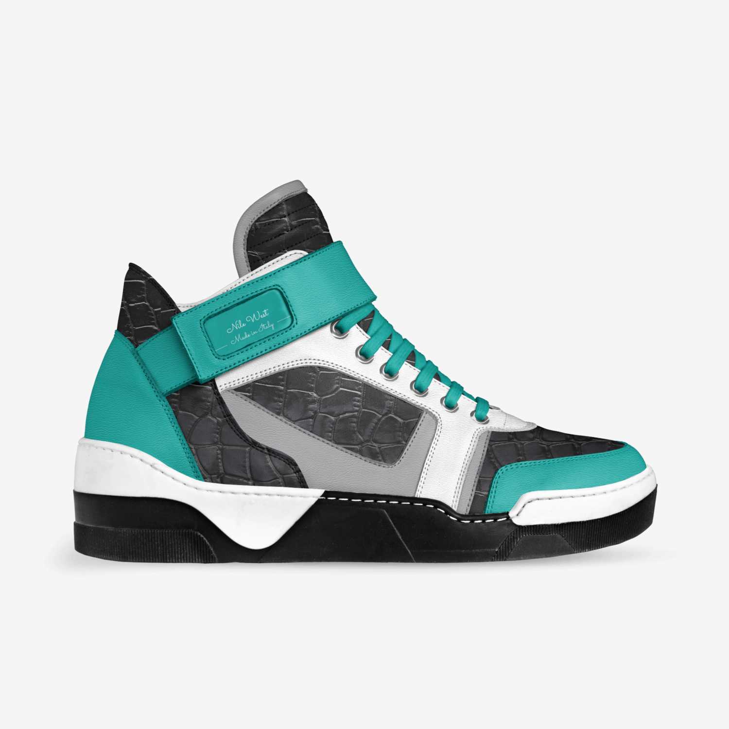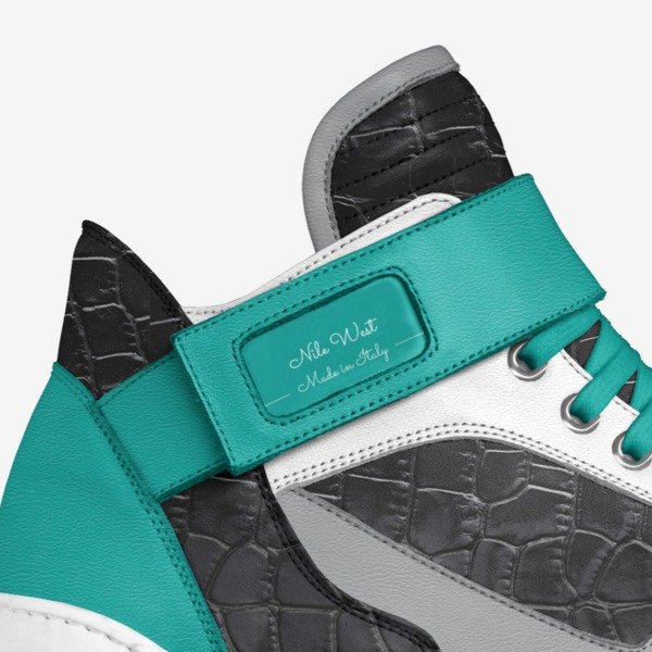 The N2H2 sneaker is another Nile West casual fashion hi-strap sneaker. The N2H2 colorway is significant to the nature of the brand. The Nile to Hudson Colorway is in direct relation to the inspiration of the brand itself and the name Nile West. The teal signifying the waters between the two lands, Africa and America, the black representing the culture that fashion gained its most influences from, and the white being the clouds in the sky above.